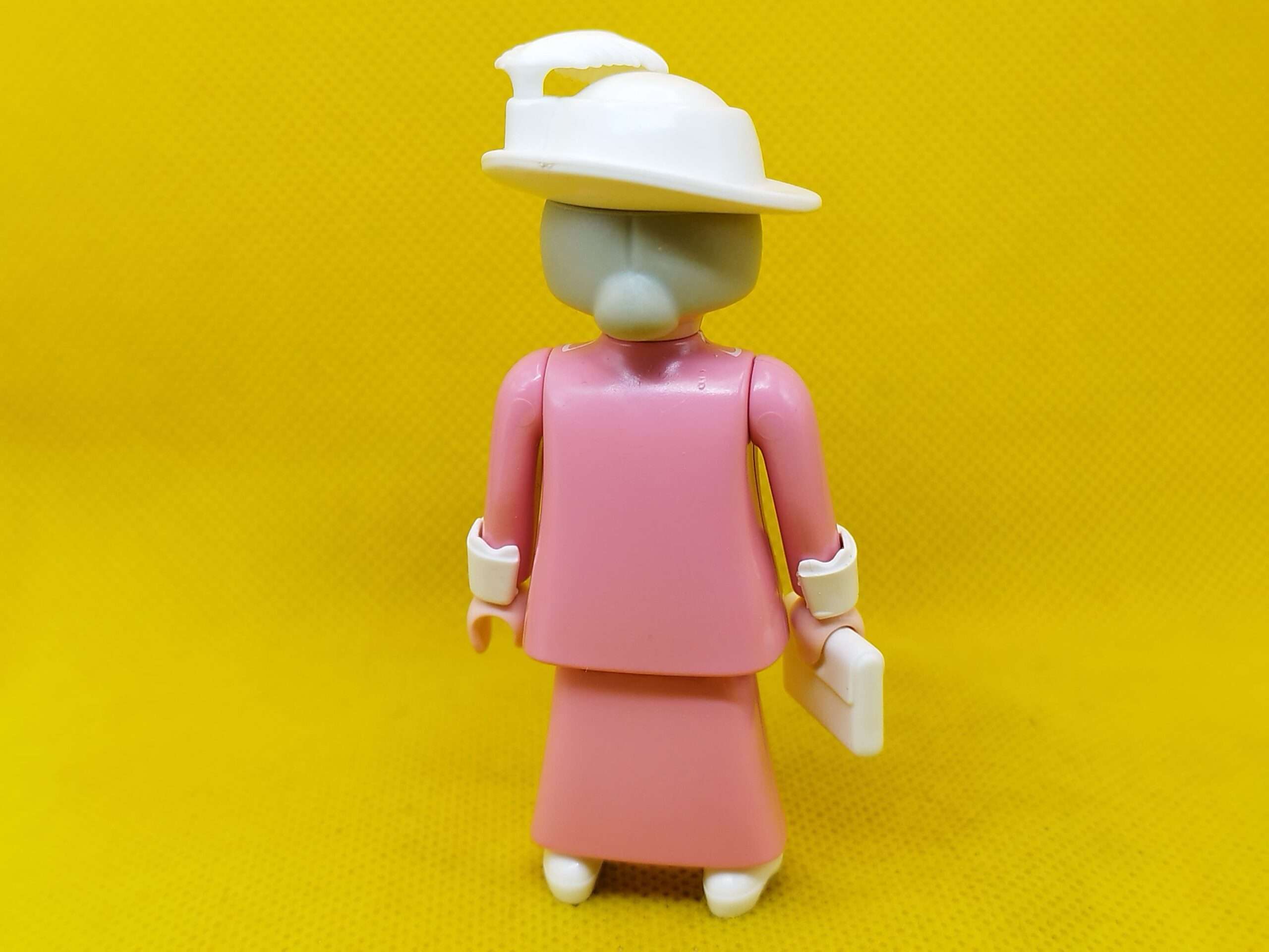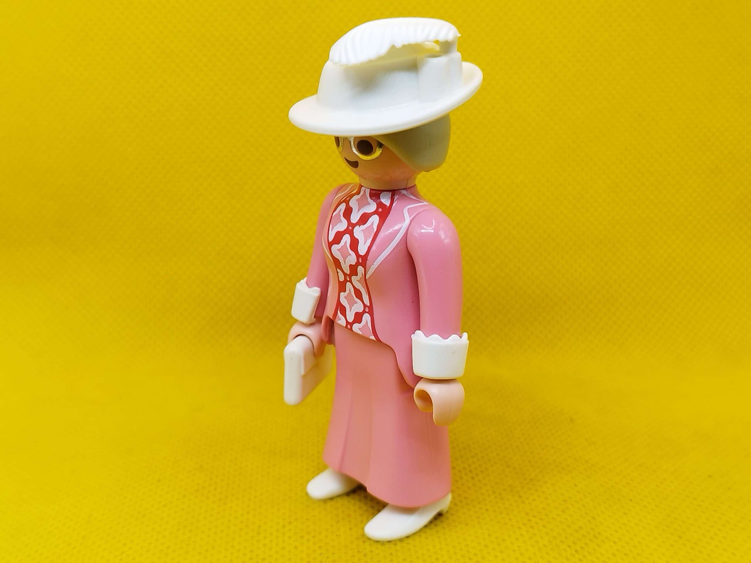 Playmobil Anciana vintage con vestido rosa y accesorios en blanco
