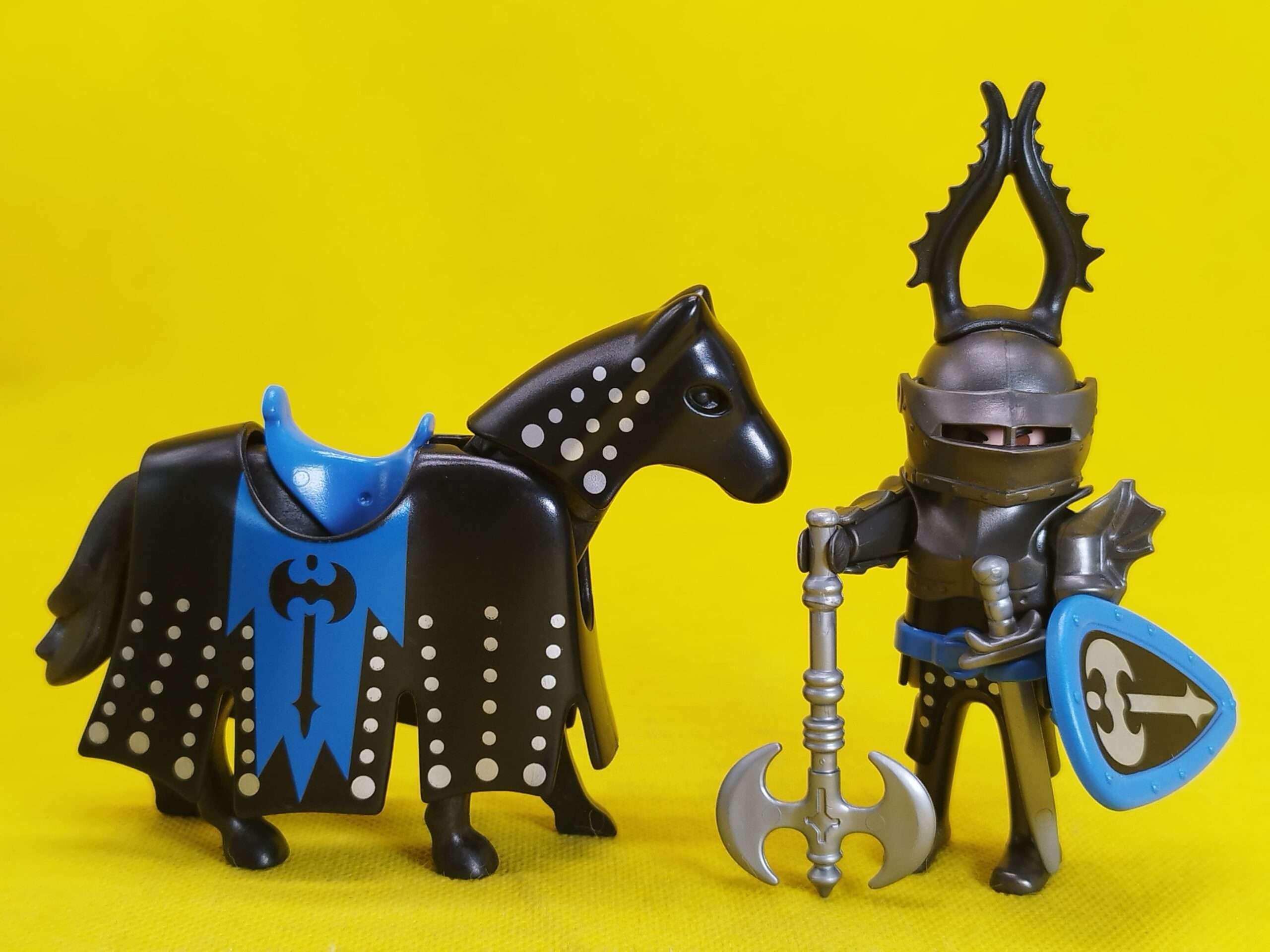 Playmobil Caballero oscuro REF 3315, caballero con armadura negra a caballo